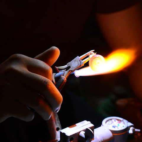 Cada brazalete está hecho a mano por nuestros artesanos experimentados durante 3 horas a 3600 grados con una baja tasa de éxito. Está hecho de vidrio murano de primera calidad, gemas de ópalo y láminas de oro y plata.